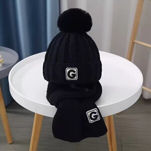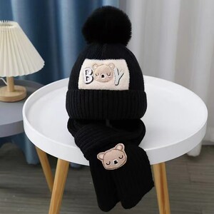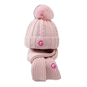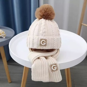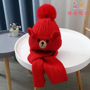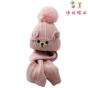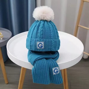 中大童帽子围巾套装男童女童冬季保暖纯棉内里毛线帽宝宝两件套帽