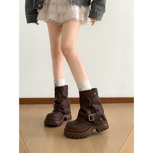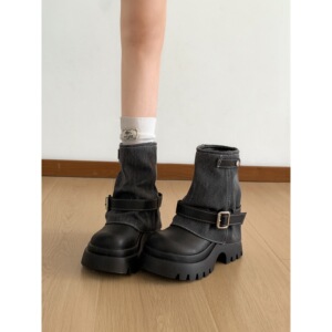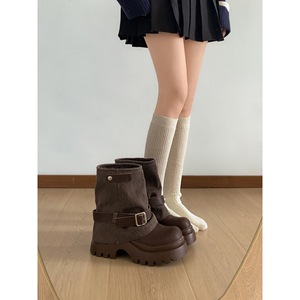 黑色复古英伦风厚底马丁靴女款2025新款秋季配裙子显瘦增高短靴子