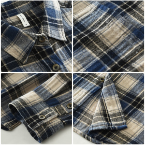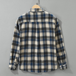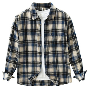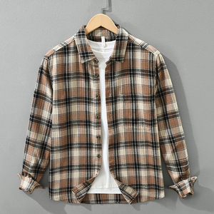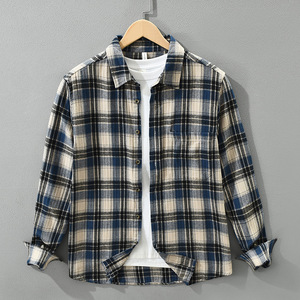 7796日系复古格子长袖衬衫男士时尚百搭文艺休闲宽松上衣一件代发