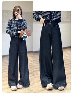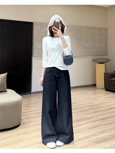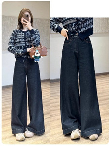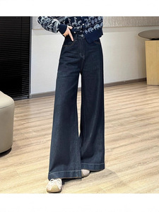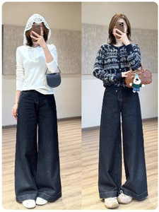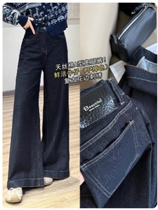 靓小靓 个性A版宽腿裤 复古深蓝锁色天丝牛仔裤 小花边藏肉阔腿裤