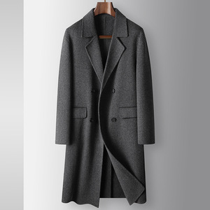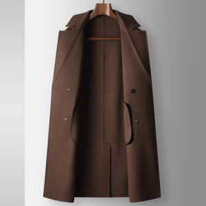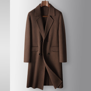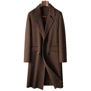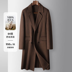 100%羊毛过膝男式大衣秋冬长款青年高奢商务风衣手工双面呢外套潮