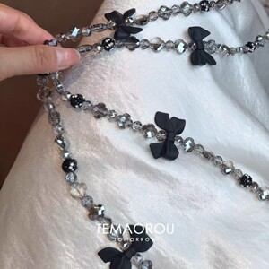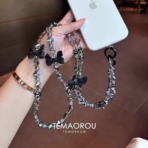 黑色蝴蝶结串珠手机链
