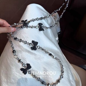 韩系黑色蝴蝶结串珠手机链高颜值ins风手机链可斜跨长款气质挂饰