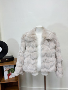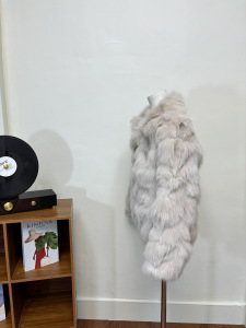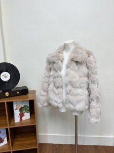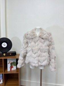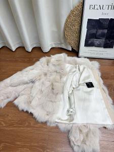网红同源 白开水温柔粉杏白真狐狸毛翻领皮草女秋冬大衣外套短款