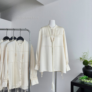 区区欧阳流苏绑带 缎面衬衫女春季新款设计感小众宽松衬衣长袖上