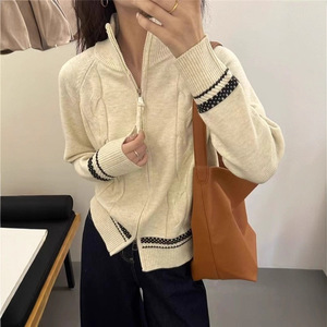 秋装设计感拉链灰色毛衣针织开衫外套针织衫女2025新款高级感上衣