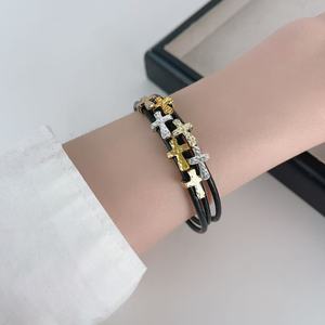 欧美跨境个性十字架皮革手饰甜酷辣妹风手绳手链时尚气质朋克潮酷