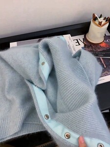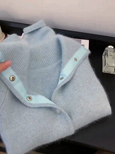 2025秋冬新款奶呼呼温柔软糯蓝色马海毛毛衣针织开衫外套潮可代发