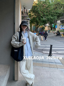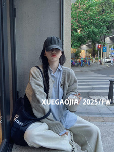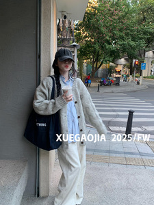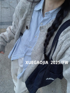 Creambaby Studio 韩系休闲灰色麻花圆领毛衣开衫慵懒高级感外套