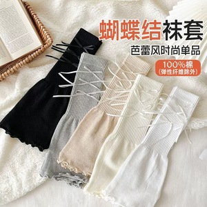喇叭型蝴蝶结腿套春夏季薄款女款灰色白色芭蕾风堆堆长筒束腿袜套