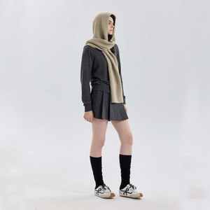 跨境新款纯色连帽围巾围脖针织帽女士秋冬季一体保暖披肩时尚外搭