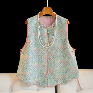 国潮风宋锦提花盘扣马甲背心女原创复古轻国潮风重工刺绣马夹外套