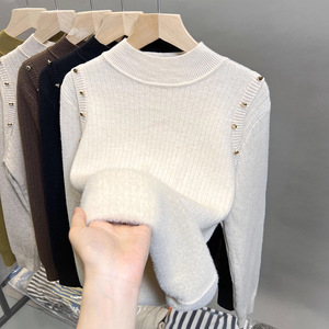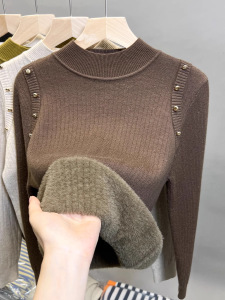 加绒半高领一体绒加厚针织打底衫2025年秋冬季新款内搭毛衣上衣女
