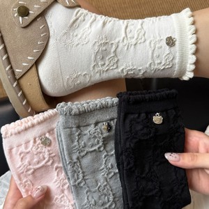 浮雕KT猫袜子女花边堆堆长袜日系可爱卡通吊坠春秋季泡泡口中筒袜