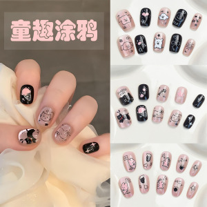 童趣可爱快乐小狗猫眼穿戴甲腮红细闪美甲贴片ins小红书爆款小猫