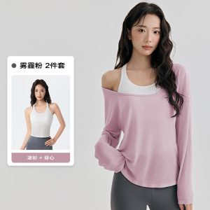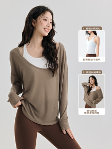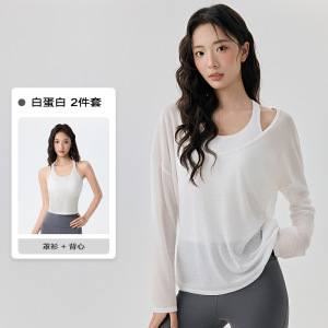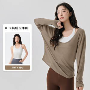 瑜伽服套装女高级感叠穿运动普拉提带胸垫长袖上衣透气罩衫健身服