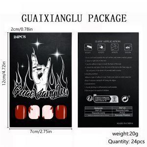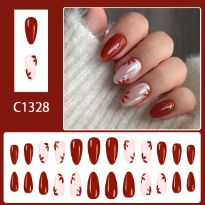 中款亮面水滴甲欧美跨境外贸秋冬新款温柔橘棕色花朵穿戴甲片24片