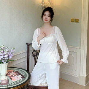 法式新款秋冬高级感带胸垫睡衣甜美丝绒家居服套装可外穿女士