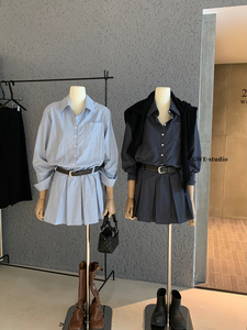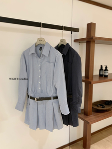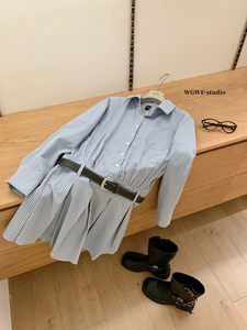 WGWE秋季新款韩系学院风格子收腰翻领衬衫连衣裙女W7293(配皮带)