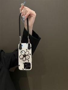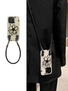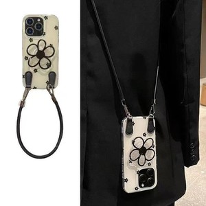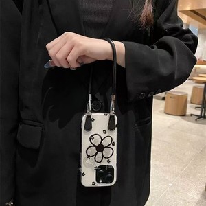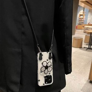 ins黑色花朵支架适用iPhone17PROMAX斜跨手机壳16新款15/14小众13