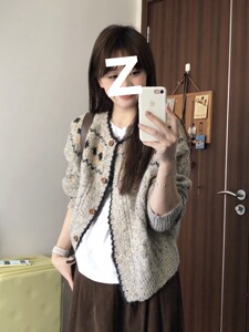 2025巨好看的早秋灰色圆领针织开衫外穿宽松慵衣外套