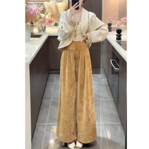 星辰2025秋新款中式设计款茧型提花刺绣外套+阔腿裤套装女两件套