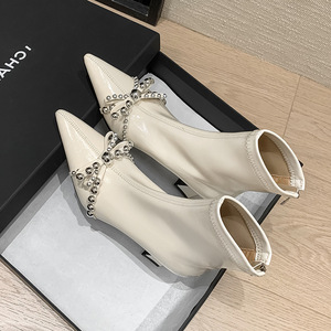 高级感铆钉蝴蝶结!2025秋冬新款大码高跟短靴女弹力瘦瘦靴气质款