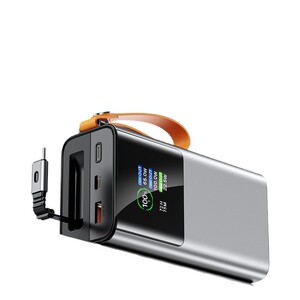 跨境 铝合金大功率自带伸缩线彩屏充电宝diy套料大容量30000毫安