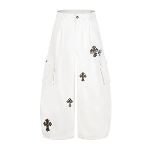 Fudge Pink 25秋季New美式复古宽松刺绣工装口袋牛仔长裤