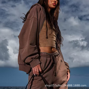 SMFK十字雕像阔身拉链帽衫刺绣纯棉休闲开衫外套男女同款25秋新款