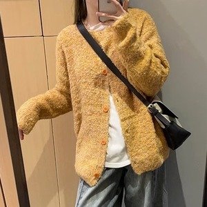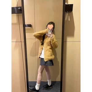 慵懒风软糯黄色针织外套女秋冬季新款设计感甜美减龄宽松休闲上衣