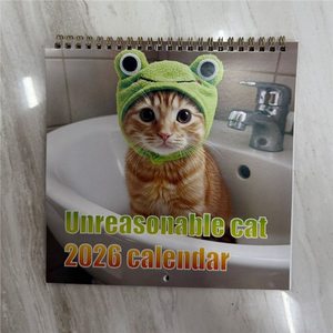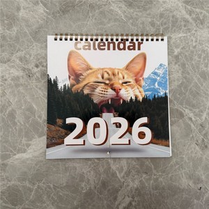 2026年新款跨境爆款亚马逊英文高地牛猫咪狗日历挂历台历厂家