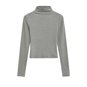 正肩美式修身显瘦纯色半高领短款上衣长袖打底衫辣妹紧身T恤秋季