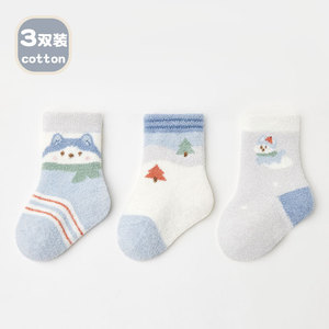 25秋冬儿童袜子加厚a类卡通可爱宝宝无骨袜加绒婴儿袜子立体小耳