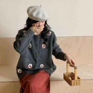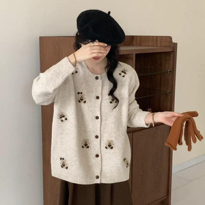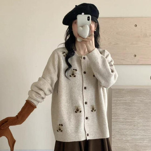 卡通针织开衫 2025秋季新款 减龄气质宽松圆领长袖上衣女毛衣3215