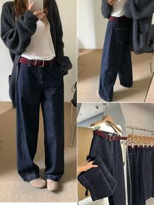 秋TOP欧制广州十三行韩版弯刀裤撞色麂配皮腰带松弛感牛仔裤82557