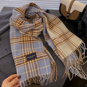 双面格子氛围感披肩双色仿羊绒百搭高级感INS保暖围脖韩版显白围