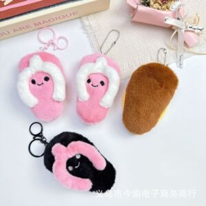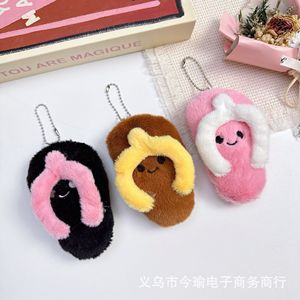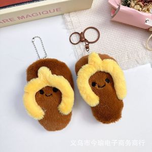 创意毛绒拖鞋挂件人字拖玩偶包包钥匙扣抓娃娃公仔吱吱叫小挂饰