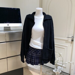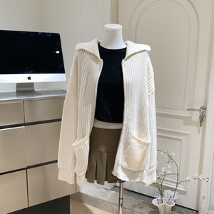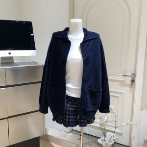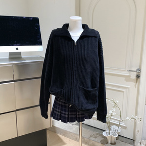 藏青色/黑色/米白拉链毛衣 宽松秋冬厚实廓形外套上衣