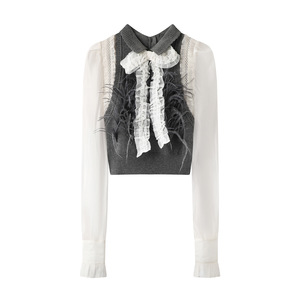 预2025秋新款女装时尚欧根纱长袖羽毛装饰针织衫上衣LF25Q41ZB282