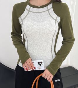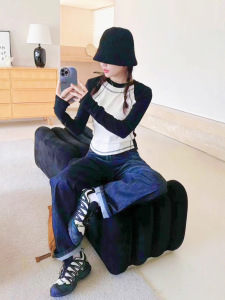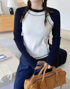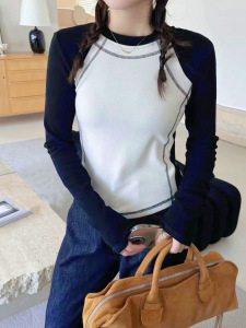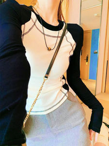 25秋季新款撞色拼接修身显瘦T恤韩版明线设计感小众女式上衣打底
