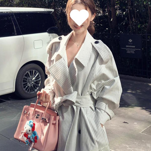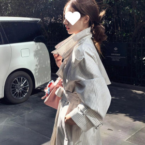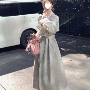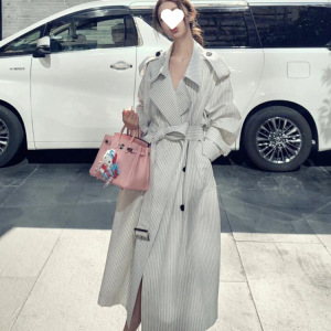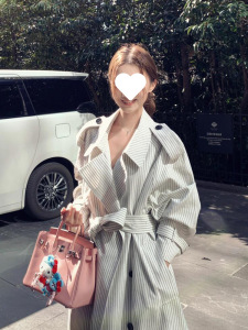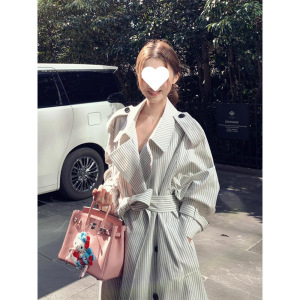 韩系双排扣条纹风衣系带外套女秋季2025新款高级感宽松中长款风衣