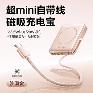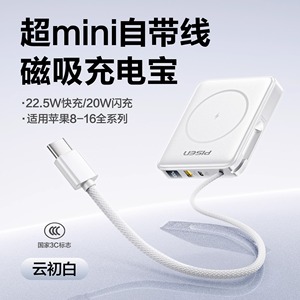 品胜mini磁吸充电宝新款自带线magsafe无线快充适用苹果移动电源
