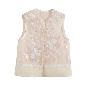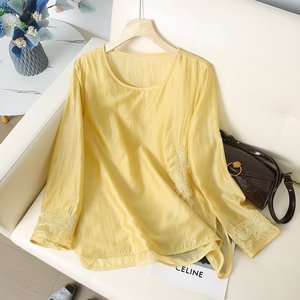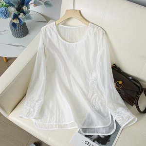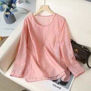 仿天丝棉质上衣女春新款圆领宽松百搭气质国风优雅新中式刺绣衬衫