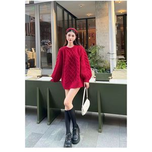 秋冬新款纯色软糯毛衣女宽松厚款麻花纯色套头慵懒风外穿针织衫女
