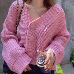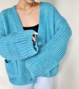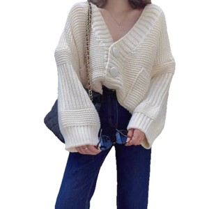 跨境外贸粗针灯笼袖外穿毛衣外套女秋冬新款百搭宽松针织开衫潮女