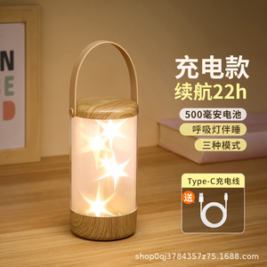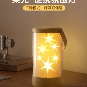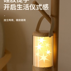 复古木纹星星氛围手提小夜灯户外露营灯USB充电卧室床头起夜灯