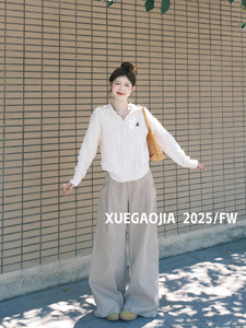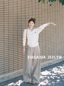 Creambaby Studio 简约休闲绞花翻领刺绣麻花毛衣女秋冬新款