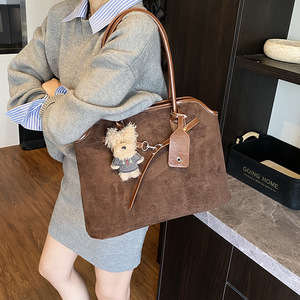 跨境绒面手提包高级感托特包包女2025秋冬新款腋下包潮百搭单肩包