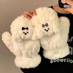 手套女秋冬季可爱毛茸茸加厚保暖骑行全包连指挂脖防风防寒棉冬天